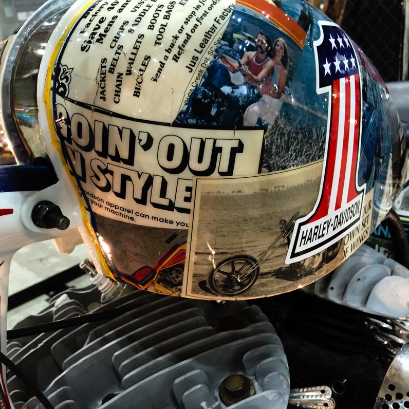 “My first motorbike was a Shovelhead from 1984,” he tells me as we look at his amazing creation, a bike I’m calling the Kabuki-Knievel. “Ever since then it has just been Harley-Davidson for me.”