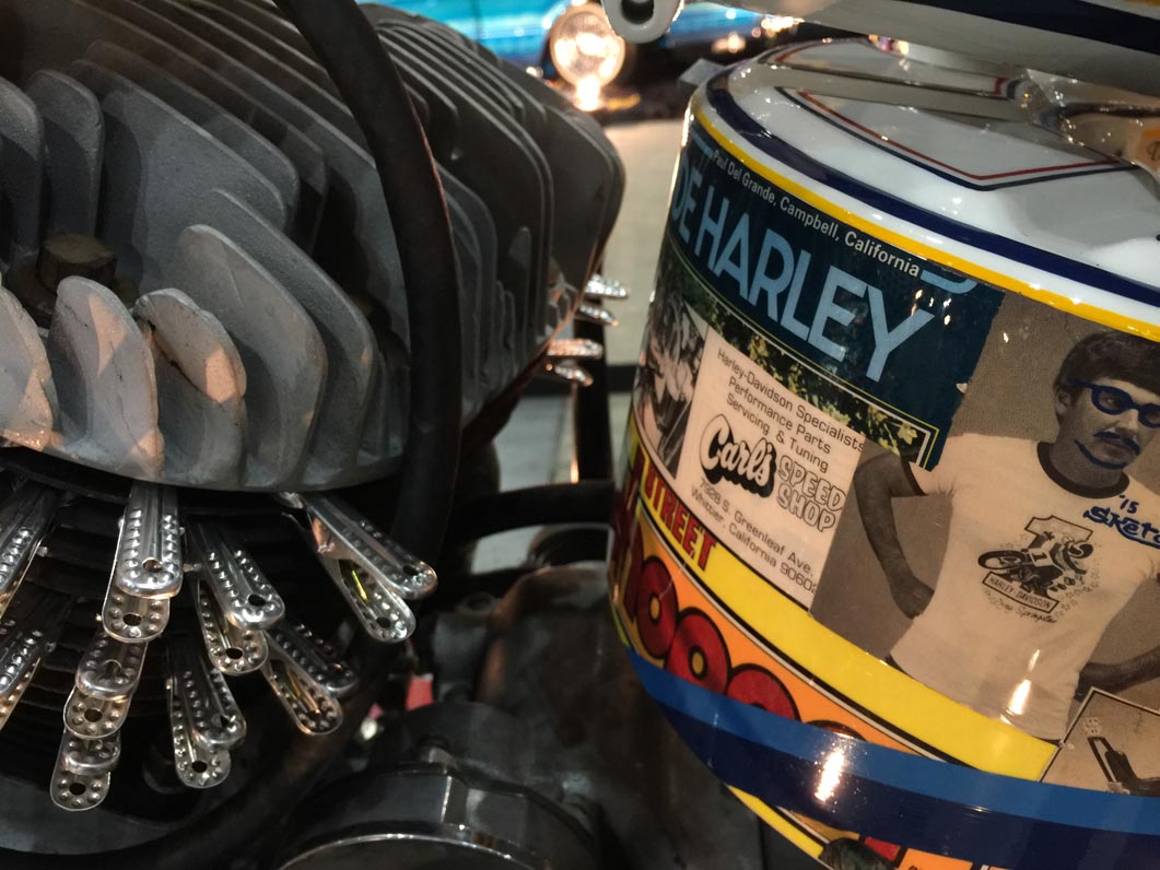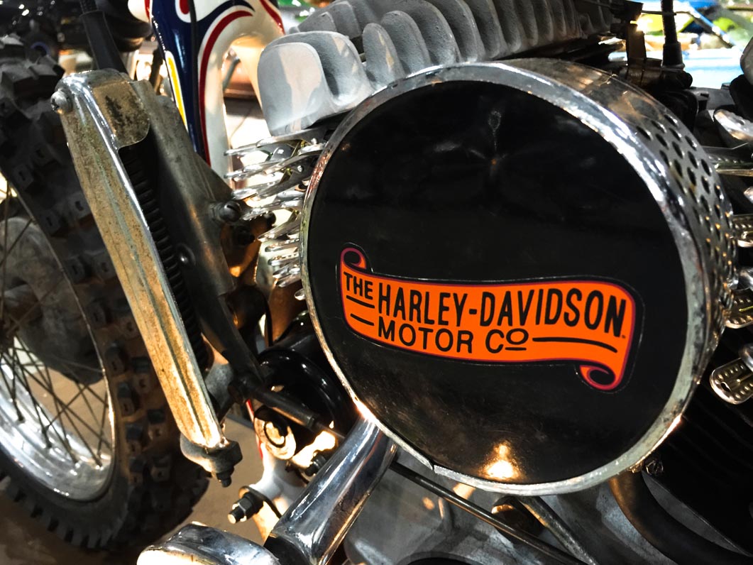There are those pretty, but less-than-functional, countersunk drill things in the crank case and a custom exhaust that looks like it has been hammered out on the back of an old rock somewhere in the desert near Barstow.