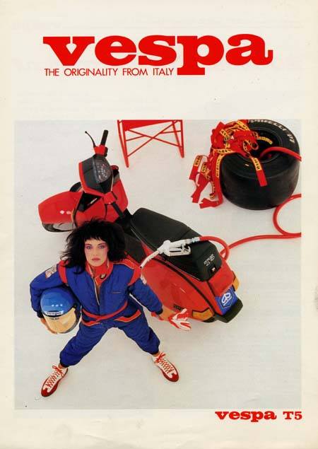 Fast forward to the 1980s and Piaggio were sponsoring the Formula 1 race series, offering drivers who achieved pole position at each round a brand new Vespa as a prize. Throughout 1984, successful drivers were awarded a model from the Vespa PX range, but when they launched the T5 in 1985 Piaggio had the perfect opportunity to utilise their sporting sponsorship for marketing.