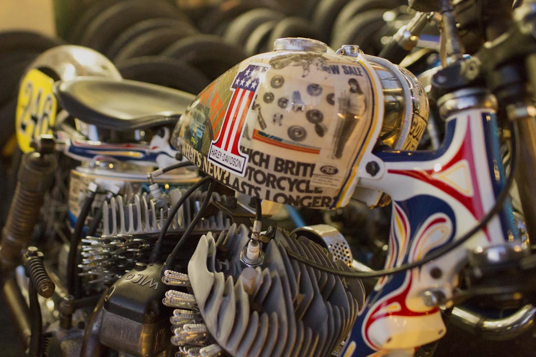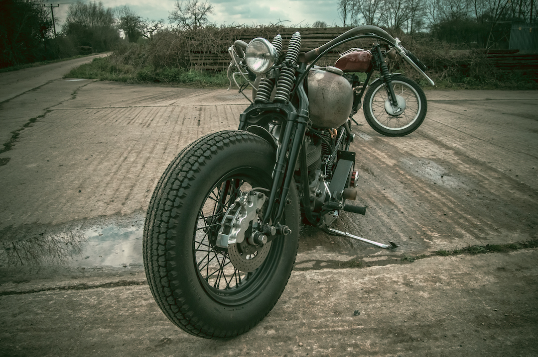 Project bike from Charlie Stockwell of Warr's parked outside